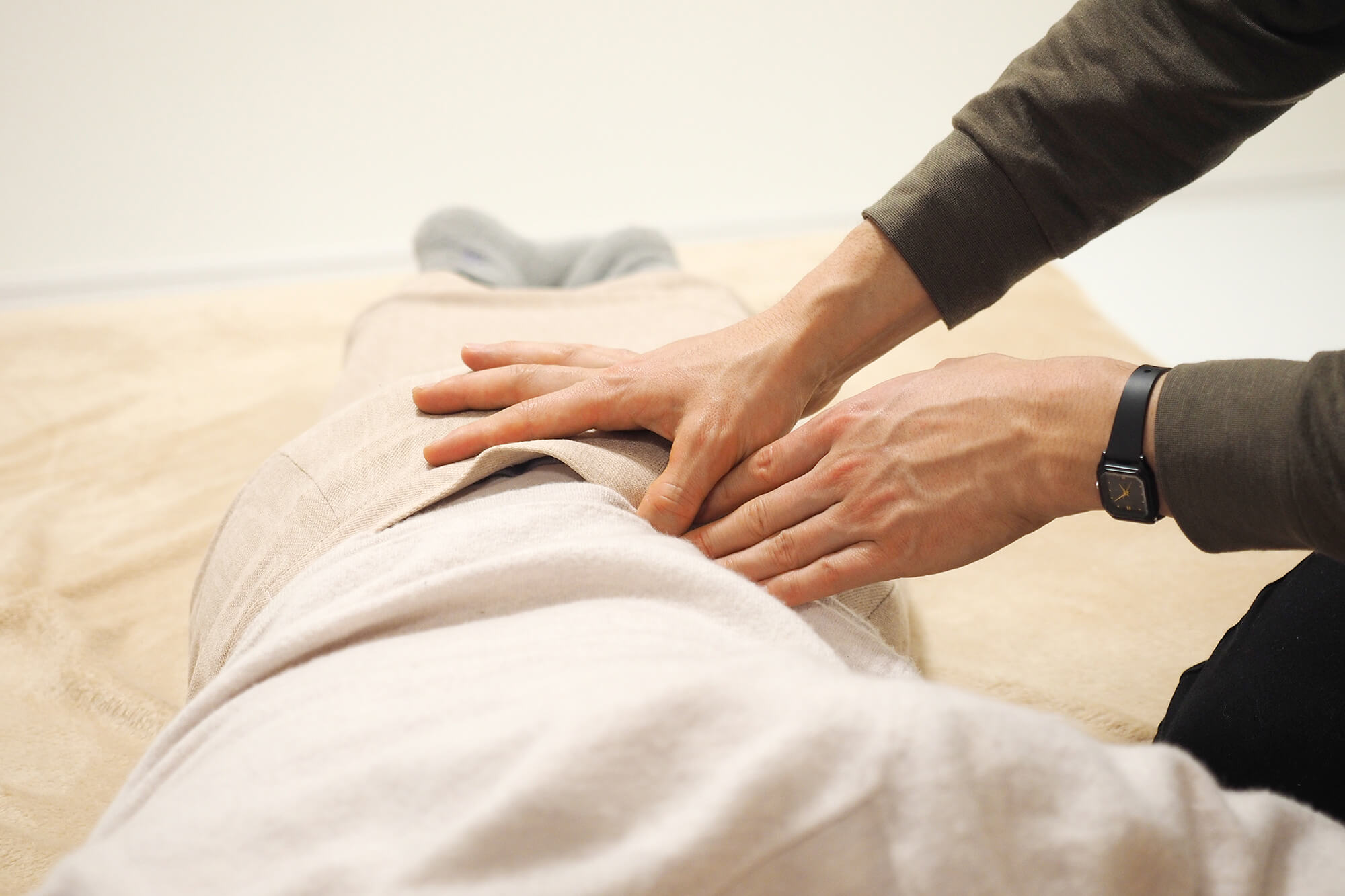 本手技は力任せに押すなど、手や腕の力に頼るものではありません。