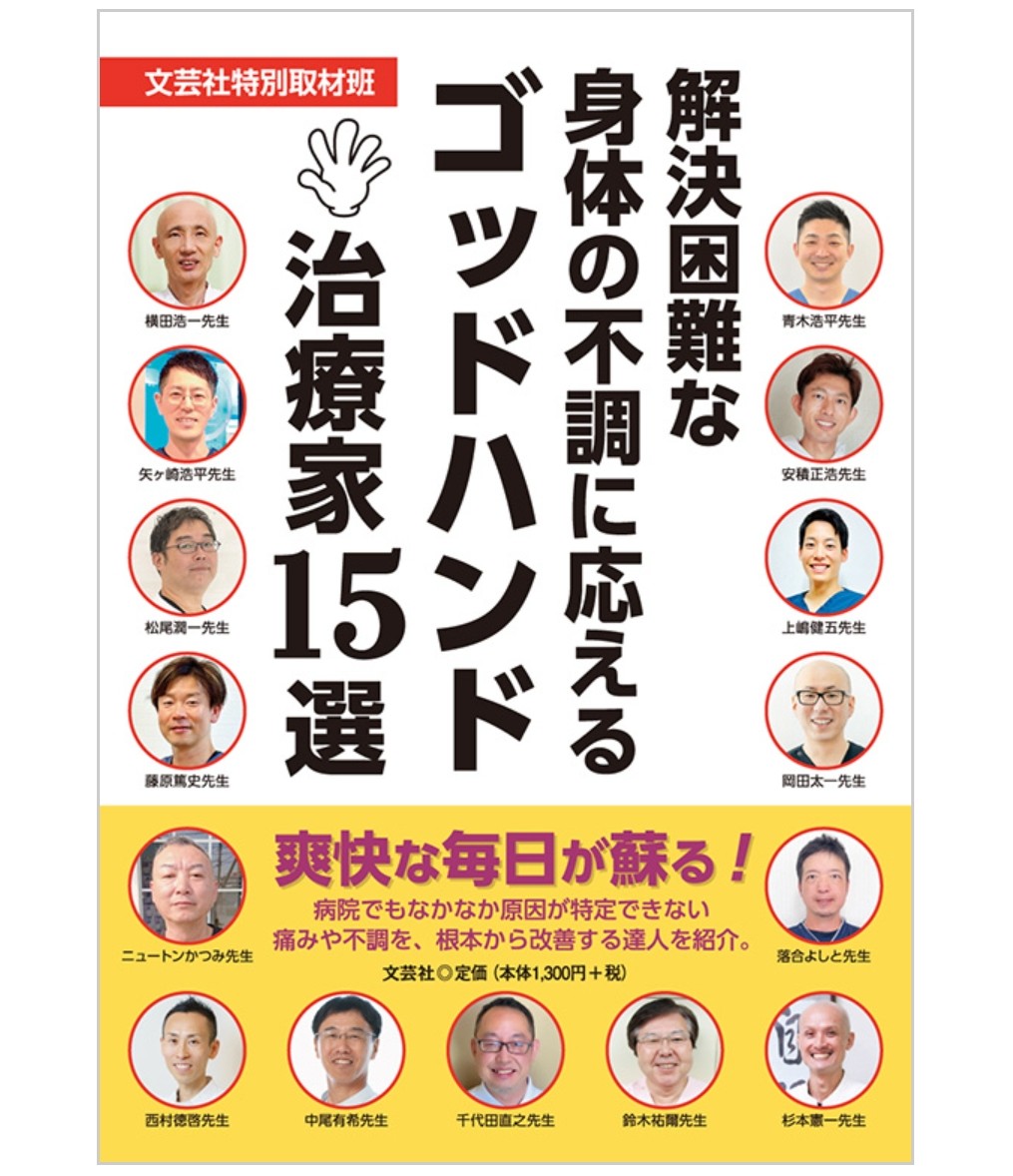 当院の代表自身も、書籍「解決困難な身体の不調に応えるゴッドハンド治療家15選」に全国の中から選出され掲載いただきました。