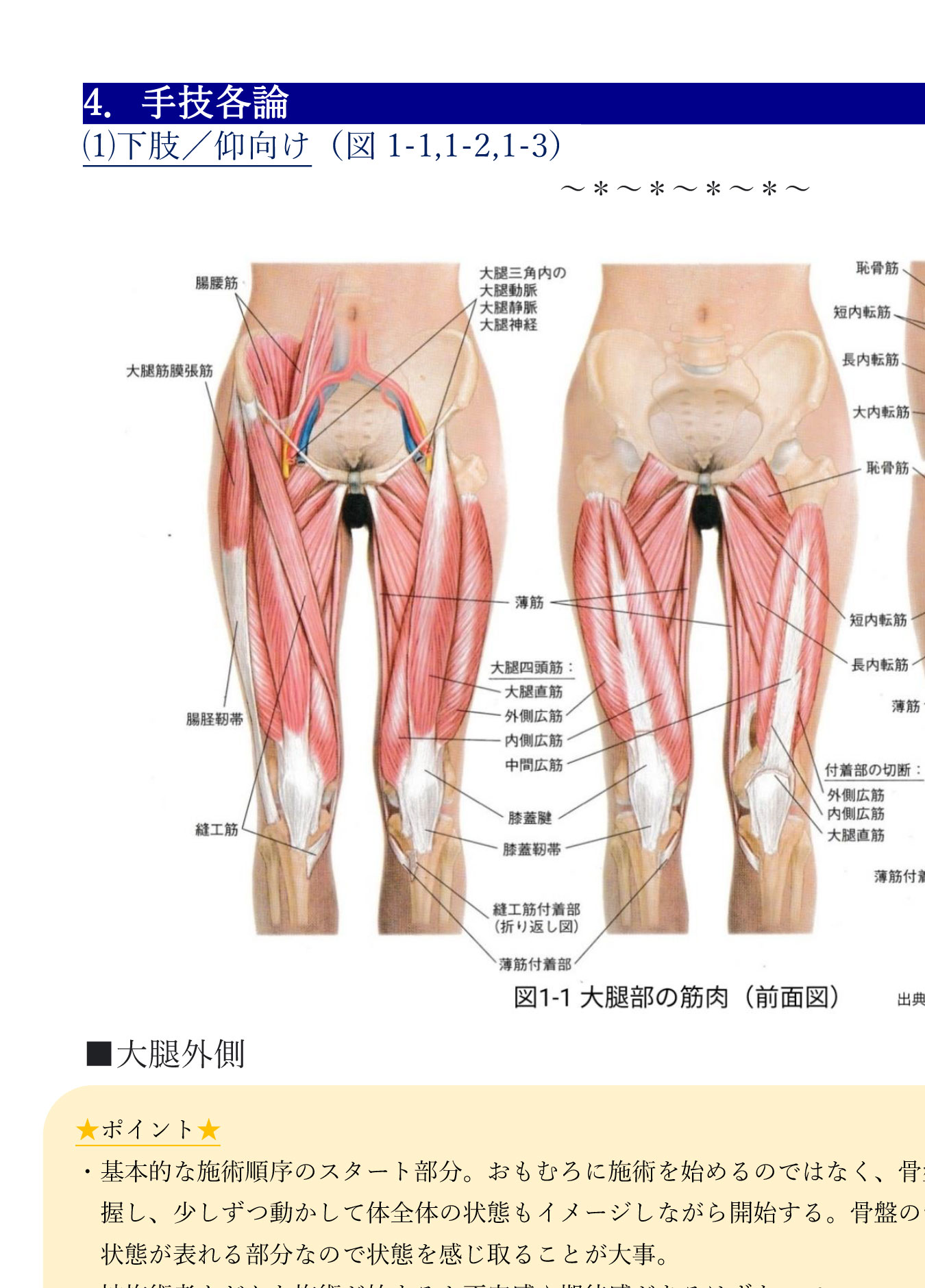 - 各部位に対する具体的な施術手順